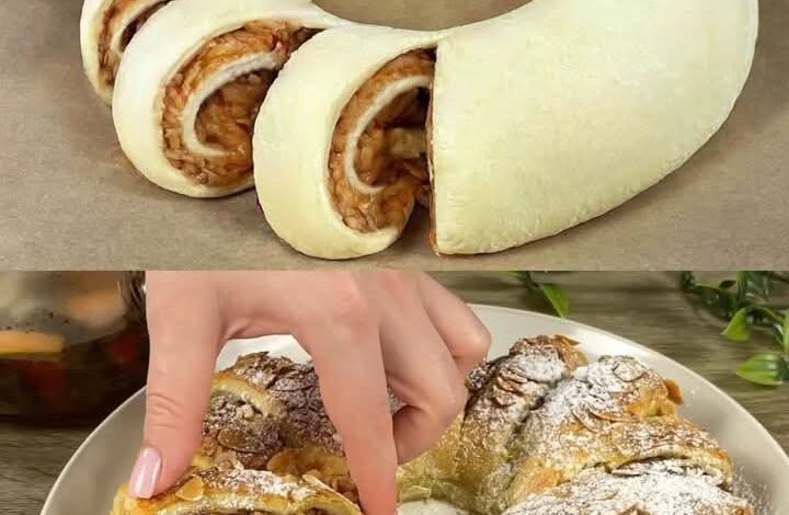 If you love the comforting flavors of apples, cinnamon, and flaky pastry, then this Apple Cinnamon Crescent Ring is the perfect dessert for you! This beautifully shaped pastry ring is filled with a delicious mixture of caramelized apples, cinnamon, and sugar, wrapped in soft dough, and baked to golden perfection. The final touch of toasted almonds and powdered sugar makes it both visually stunning and irresistibly tasty. Whether you’re serving it for breakfast, brunch, or dessert, this apple-filled delight will be the highlight of your table. Let’s dive into the recipe and create this warm, spiced, and buttery treat! 🍏🥐✨
