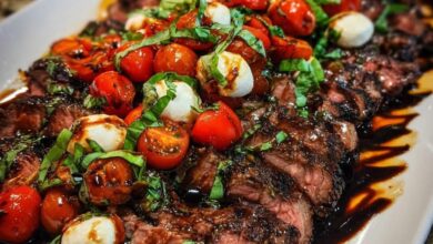 Grilled Balsamic Steak Caprese with Mozzarella, Tomatoes, and Basil Ingredients: 2 (8 oz) ribeye steaks (or your preferred cut) 2…