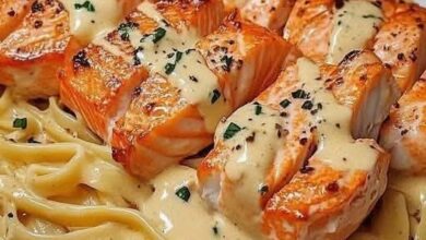 Creamy Garlic Butter Salmon Pasta ⭐ Ingredients (Serves 4) For the Salmon 1 lb salmon fillets (skin removed) 1 tsp…