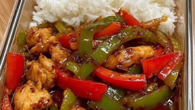 Sizzling Garlic Chicken Stir-Fry with Peppers & Steamed Rice Ingredients: – 2 chicken breasts, diced – 1 green & 1…