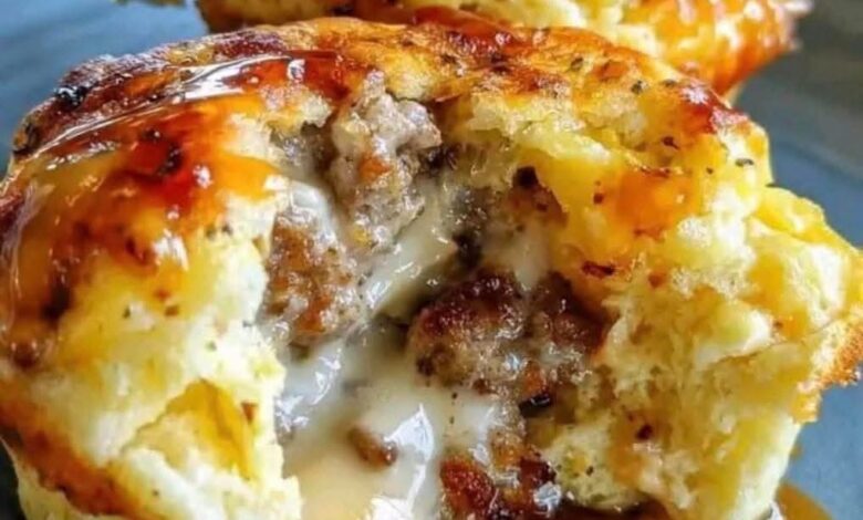 Imagine buttery biscuits baked to golden perfection, oozing with melted cheese and savory sausage at the center.