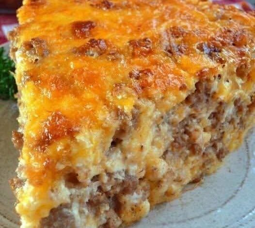 Cheesy Sausage Breakfast Bake is a golden, savory casserole layered with seasoned ground sausage, fluffy eggs, and a generous amount of melted cheese. It’s the kind of dish that fills the kitchen with irresistible aromas and brings people to the table with eager appetites. The top is beautifully browned and slightly crisp, while the interior remains moist and tender, packed with flavor and texture.