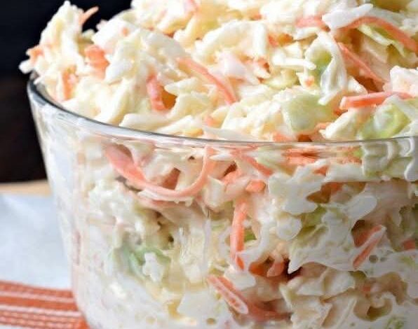 Add in shredded cole slaw mix and fold over with spatula until completely coated. Cover and refrigerate 2 hours, or overnight.