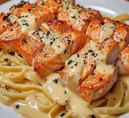 Add 2–3 cups fresh spinach to sauce and wilt before adding salmon.