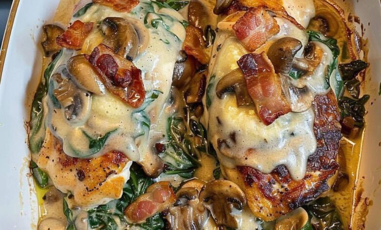 Creamy Spinach Chicken with Bacon and Melted Cheese