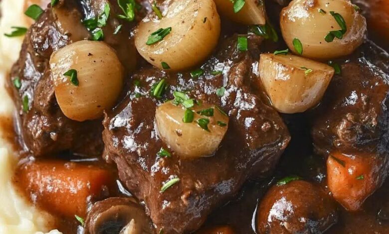 Lighten it up: Serve smaller portions of the Beef Bourguignon Recipe over cauliflower mash or roasted root veggies to keep it a healthy dinner without losing comfort.