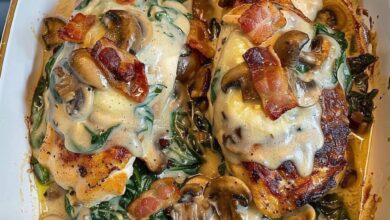Creamy Spinach Chicken with Bacon and Melted Cheese