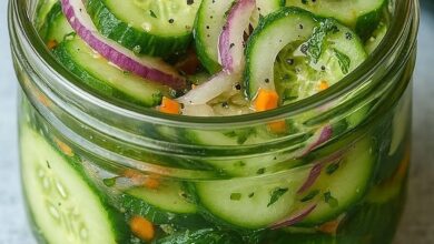 Ingredients: 4 medium cucumbers, thinly sliced 1 small red or white onion, thinly sliced 1 cup white vinegar ½ cup…