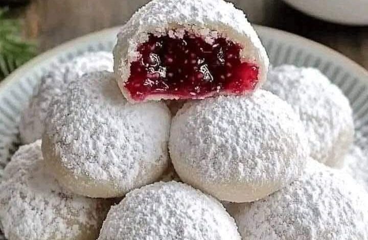 Place the filled cookie balls on the prepared baking sheet, spacing them about 2 inches apart.