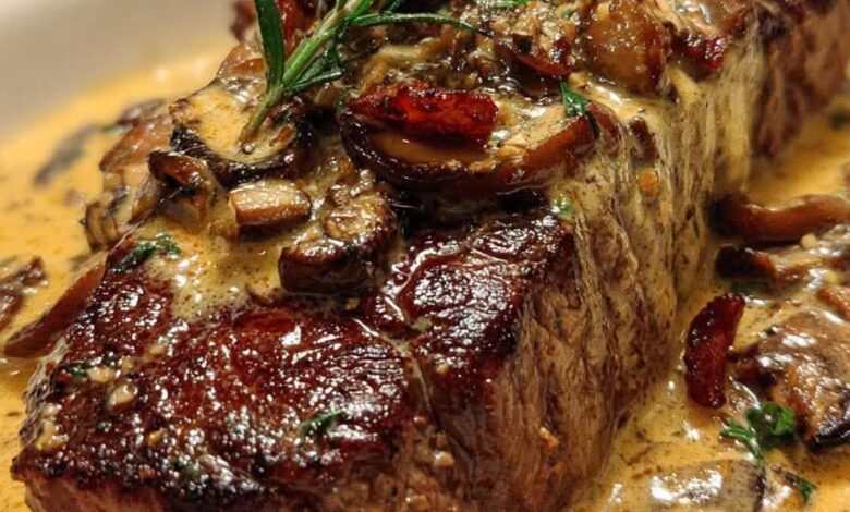 Steak with Haunted Bourbon Garlic Cream Sauce