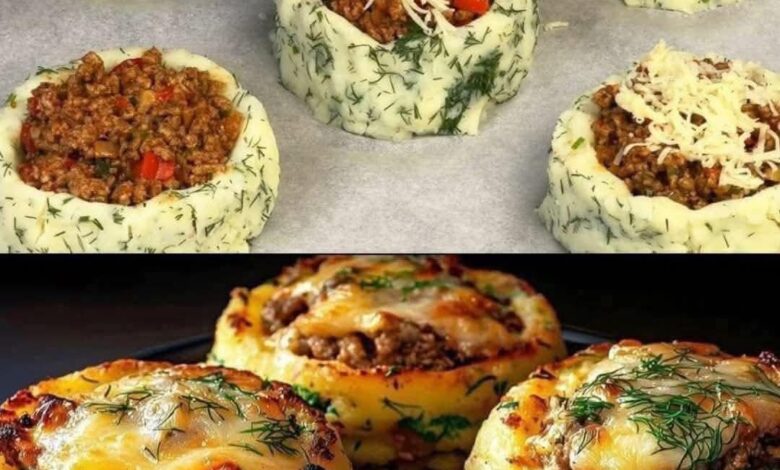 Stuffed Mashed Potato Nests with Meat and Cheese
